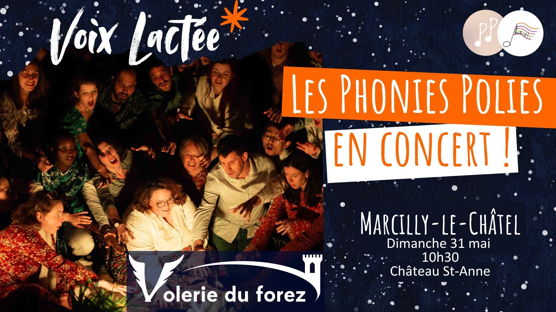 - 18 avril : Le Ha’choeur et les Phonies Polies vous étoilentRéservez vos places dès maintenant : https://www.helloasso.com/associations/la-voix-est-libre-laveli/evenements/concert-voix-lactee-des-phonies-polies-et-du-ha-choeur
